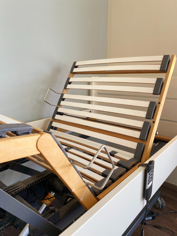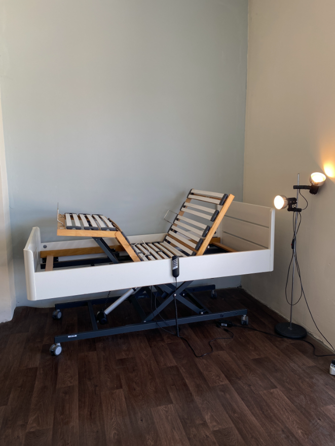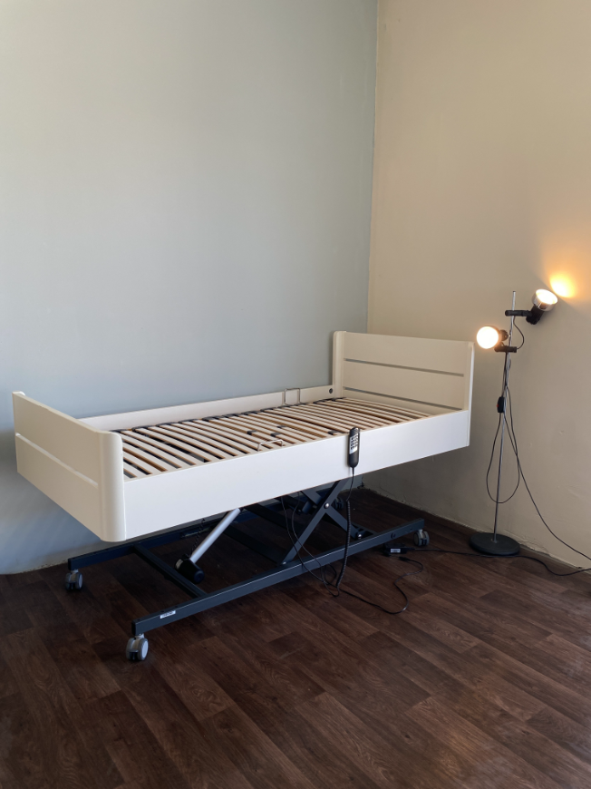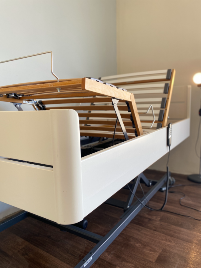 Fedezze fel ezt a modern, fa oldallappal ellátott elektromos betegágyat, amely az alapfunkciók mellett kényelmet, biztonságot és letisztult megjelenést nyújt. Az ágy tökéletes választás otthoni ápoláshoz, hiszen egyszerre megbízható, könnyen kezelhető és esztétikus. A lamellás fekvőfelület jó szellőzést biztosít, az állítható háttámla és lábrész pedig lehetővé teszi, hogy a beteg mindig a számára legkomfortosabb testhelyzetben pihenjen. Masszív, fékezhető kerekek gondoskodnak a mobilitásról és a biztonságról, így az ágy könnyedén mozgatható, de stabilan rögzíthető is.