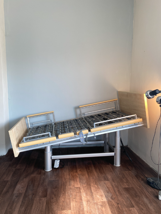 - 4 motoros funkció: háttámla emelés, comb-láb rész mozgatás, magasságállítás, anti-trendelenburg pozíció (ágy döntése, a képen jól kivehető)