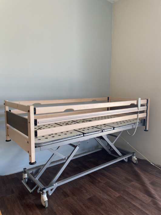 Ez az 5 funkciós Fisher elektromos ápolási ágy ideális választás ágyhoz kötött betegek vagy idősek otthoni ápolásához, különösen akkor, ha fontos a minimális padlószint és a sokoldalú pozicionálhatóság. A tripla oldalsó korlátok biztonságosabbá teszik a mindennapi használatot.